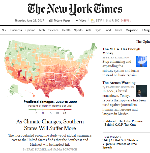 County-level damages by sector (CSV) – This file contains median damages for each sector shown in Fig 2 of the main article (agriculture, mortality, energy, low-risk labor, high-risk labor, coastal damages, property crime, violent crime, total damages). These impacts are the central estimate for average annual damage during 2080-2099 under a business-as-usual scenario (RCP8.5).